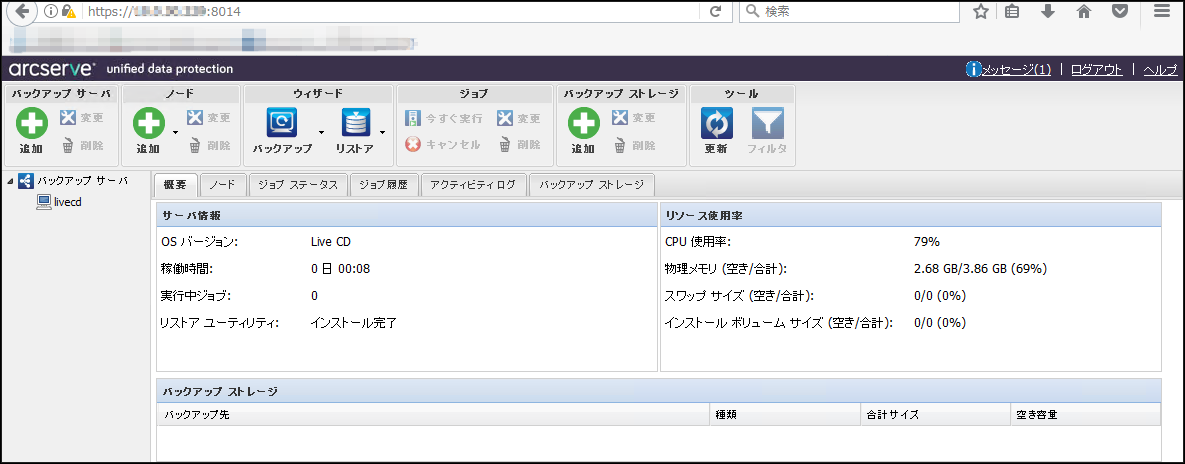 11.リストア用サーバ(復旧メディアで起動しているサーバ)にアクセスできる端末からブラウザを開き、上記で記録したURLにアクセスします。