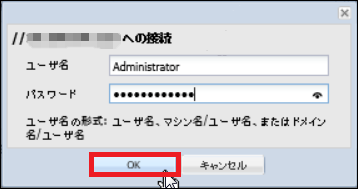 16.バックアップ保存先ストレージとなるサーバーインスタンスの接続許可を求められるので、ユーザ名、パスワードを入力し「OK」をクリックします。