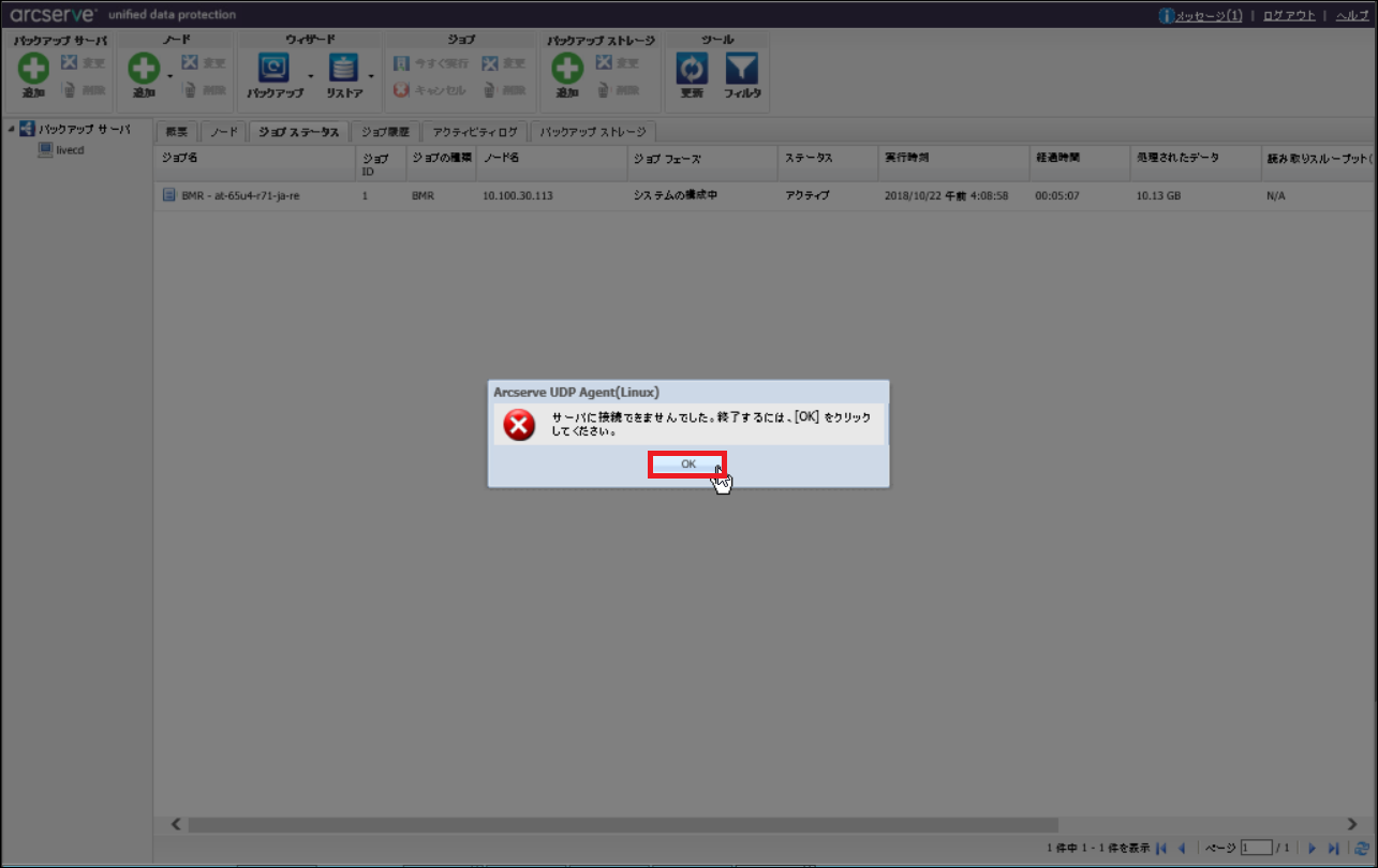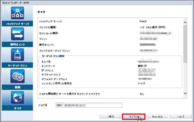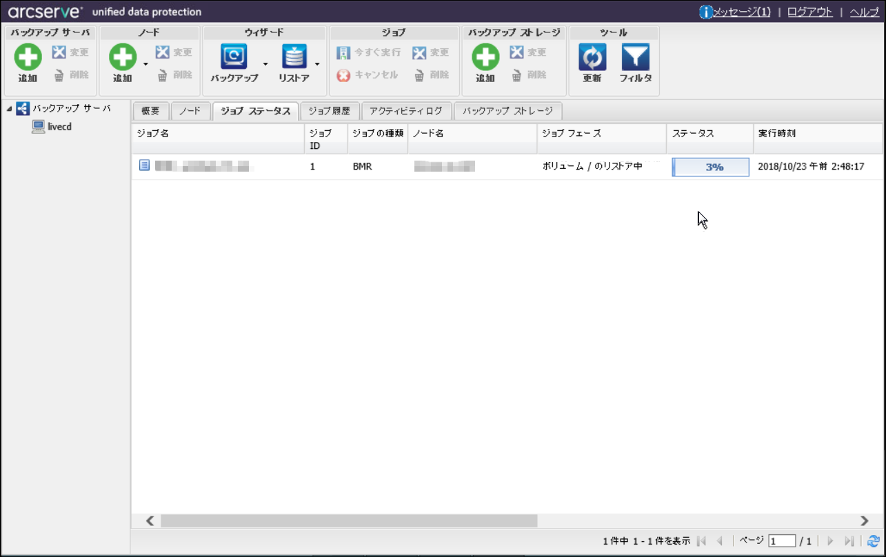 24.元の画面に戻り、「ジョブステータス」タブにリストアジョブが作成されたことを確認します。
