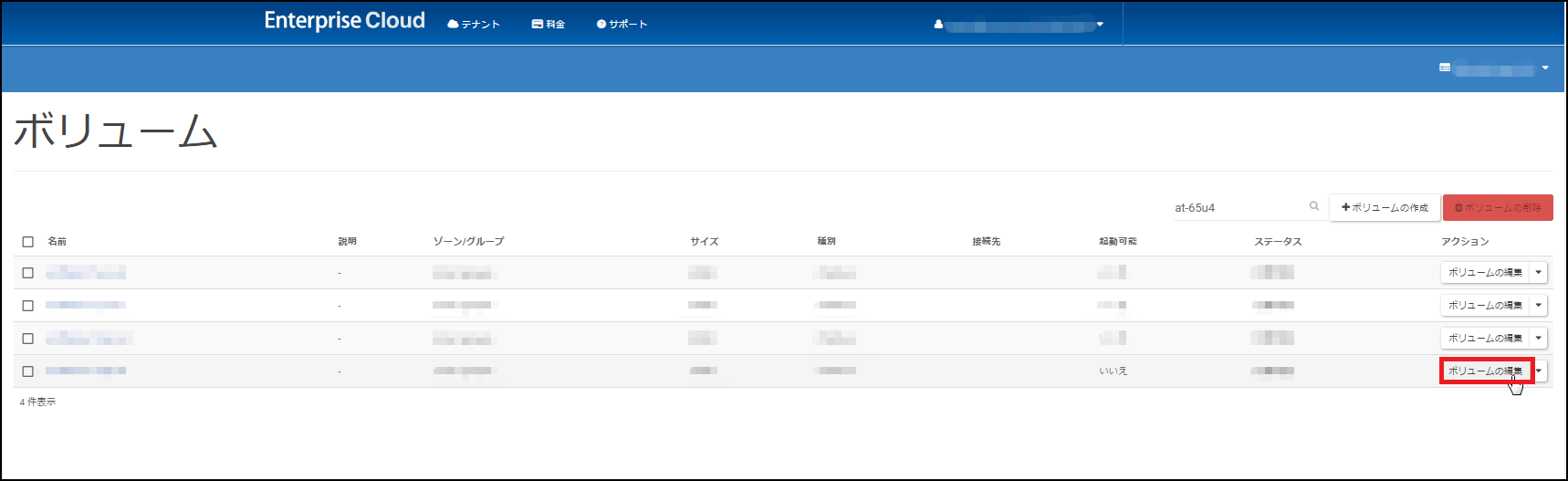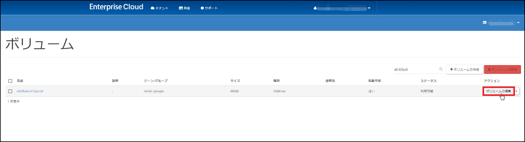 作成したボリュームの「ボリュームの編集」をクリックします。