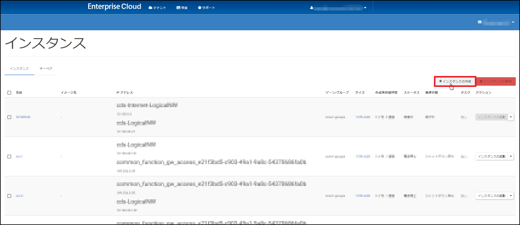 10.上記を設定後、「インスタンスの作成」をクリックします。