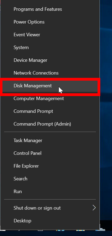 [Windowsスタートアップ]メニューから、[Disk Management]をクリックします。