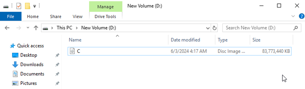 リストア用のボリュームが接続されているサーバーのDドライブにC.imgが保存されていることを確認します。