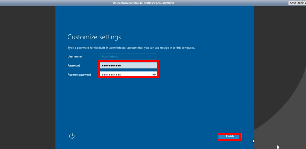 一時設置サーバーのパスワードを設定し[Finish]をクリックします。