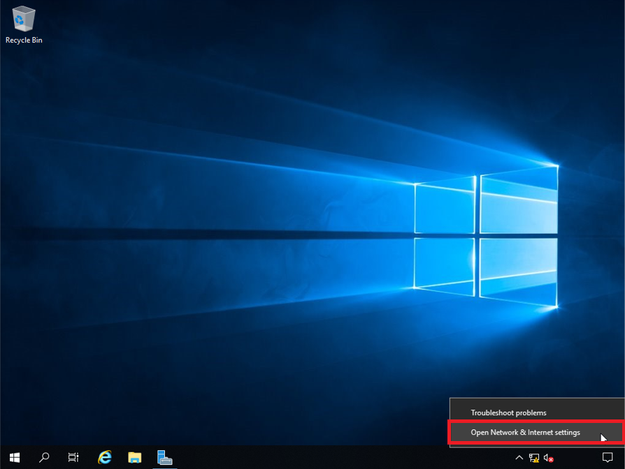 資材サーバーの右下の[インターネットアクセス]を右クリックし[Open Network and Sharing Center]をクリックします。