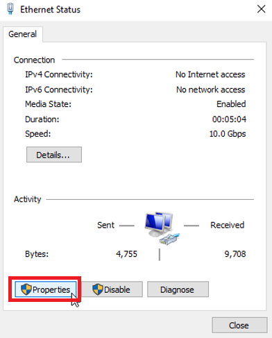[Internet Protocol Version 4 (TCP/IPv4)]を選択し、[Properties]をクリックします。