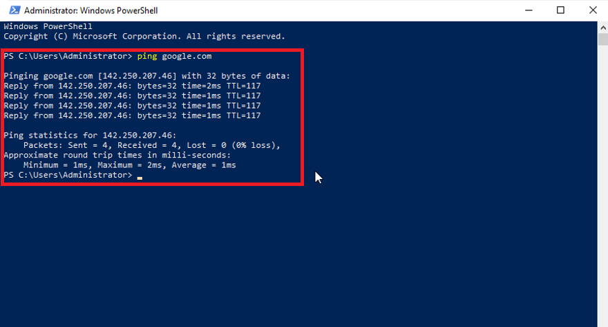 再起動後、Windows Power Shellで「hostname」を実行し、ホスト名が変更されていることを確認します。
