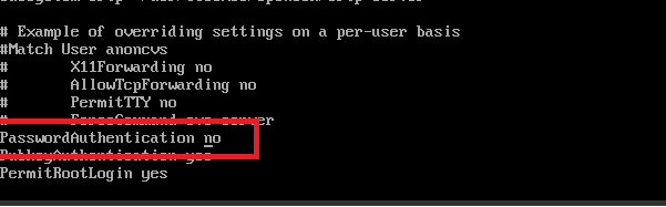 「PasswordAuthentication」が「no」になっていることを確認します。