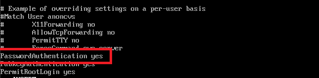 「PasswordAuthentication」を「yes」に変更します。