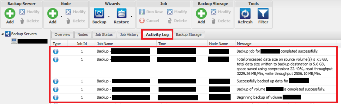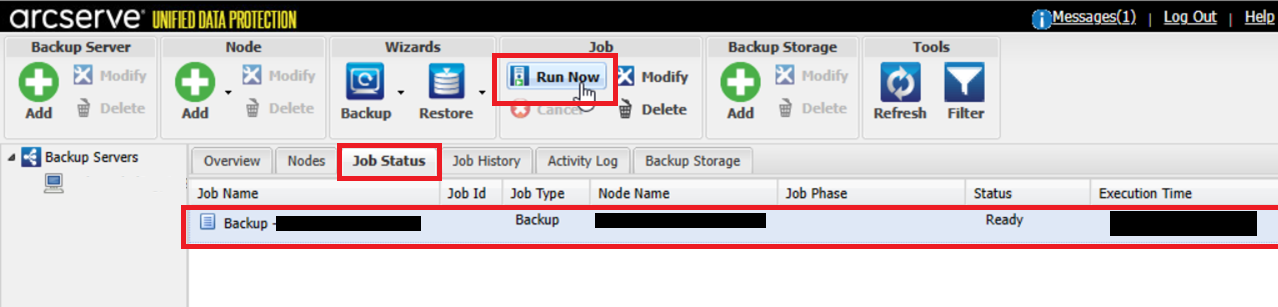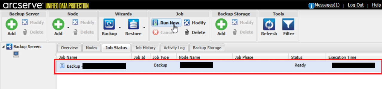 元の管理画面に戻り、「ジョブ ステータス」タブにバックアップジョブが設定されたことを確認します。
