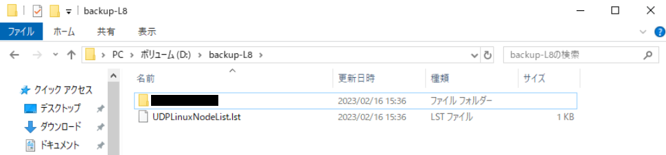 フォルダ配下に、バックアップデータがあることを確認します。