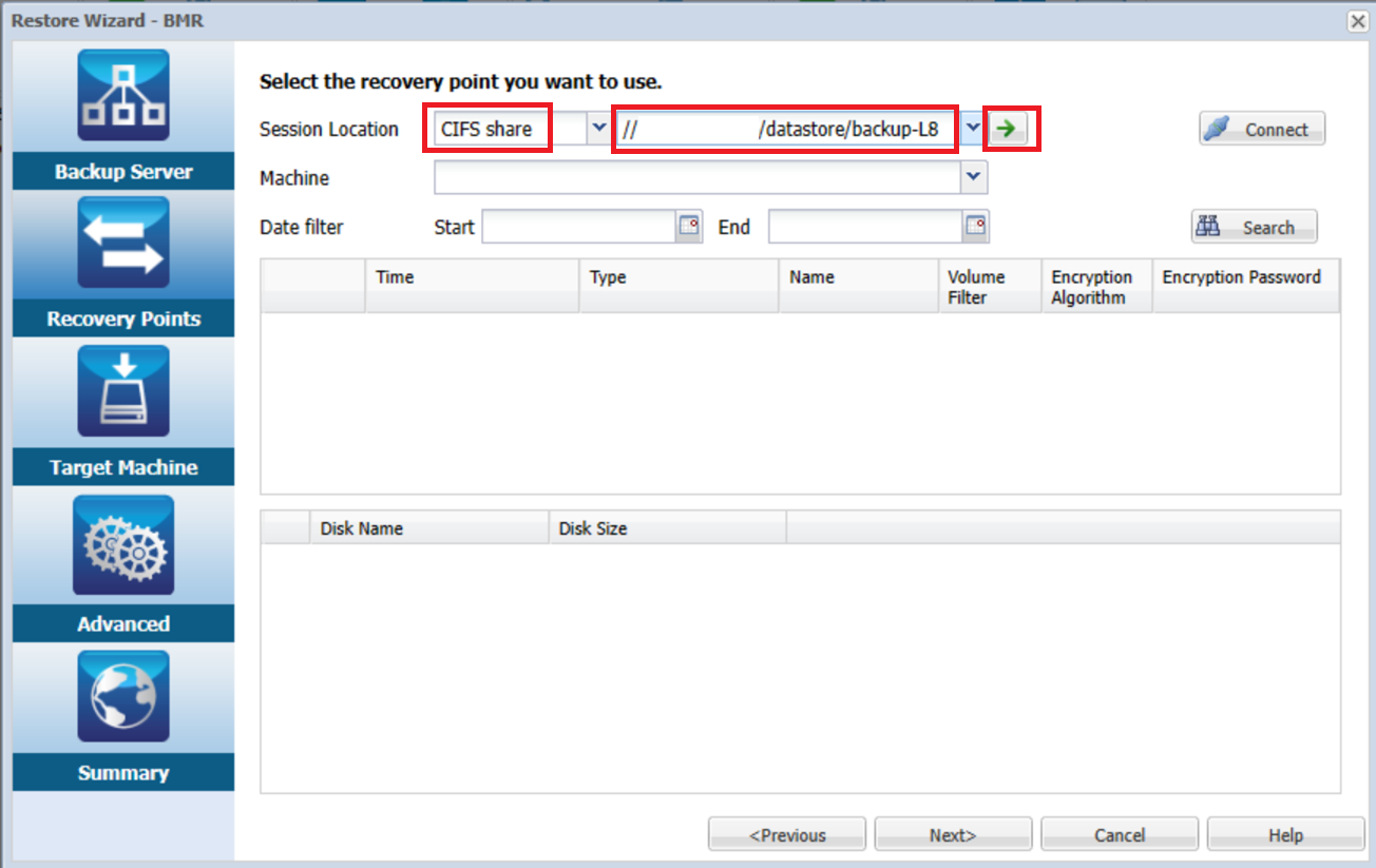 2.11.2. ArcserveUDPのリストア実行前の作業¶