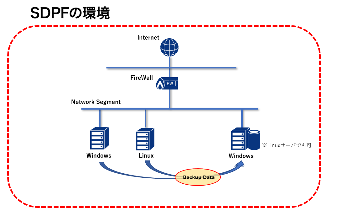バックアップに必要な容量や時間の要件が整理できたので、Smart Data Platform(以下SDPF)の環境でArcserveを利用するパターンを検討します。SDPFの環境ではバックアップ先をいくつかの環境に適用できます。