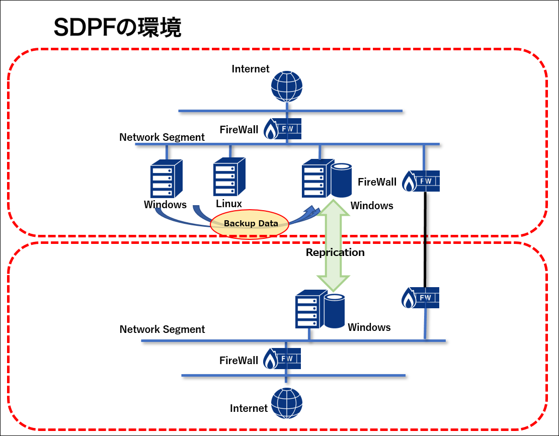 SDPF内の別リージョンの利用や、SDPFとは別にコロケーションサービスを利用中の場合、お客さまのサーバーまたはストレージをバックアップ対象サーバーのバックアップ先として利用できます。