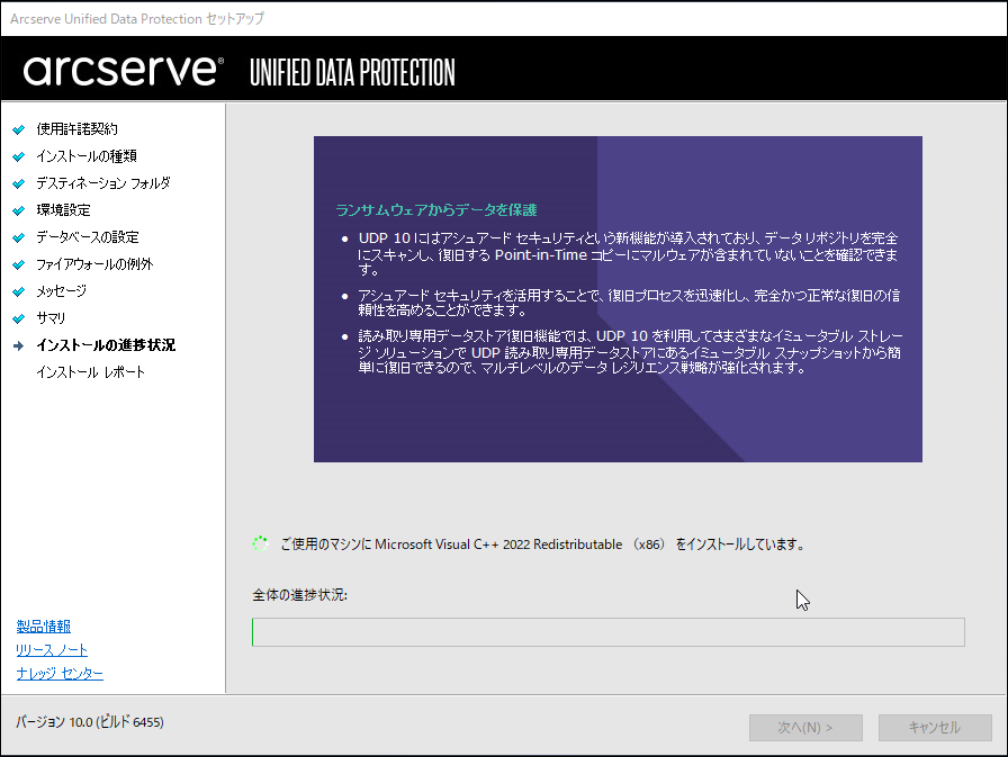 10.セットアップの検証が完了し、インストールの準備が整うと、以下の画面が表示されます。