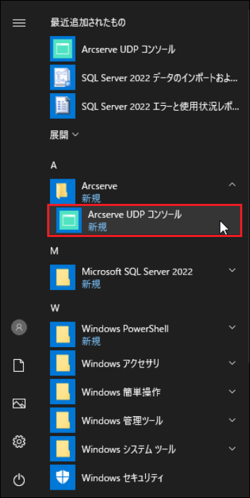 14.スタートボタンをクリックして、以下のようなArcserveの項目が表示されていることを確認します。
