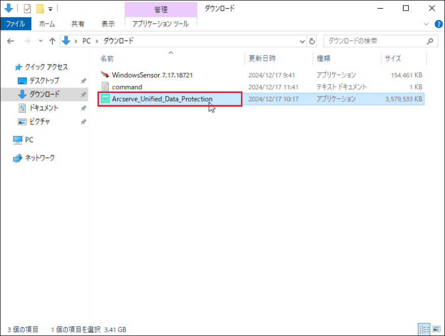 1.Arcserveの管理コンソールをインストールするコンピューターに、AdministratorまたはAdministratorsグループのユーザーでログインします。Arcserve Webサイトから、ダウンロードしたインストーラが保存されているフォルダーを開き、「Arcserve_Unified_Data_Protection.exe」をダブルクリックします。セットアップウィザードが開始されます。