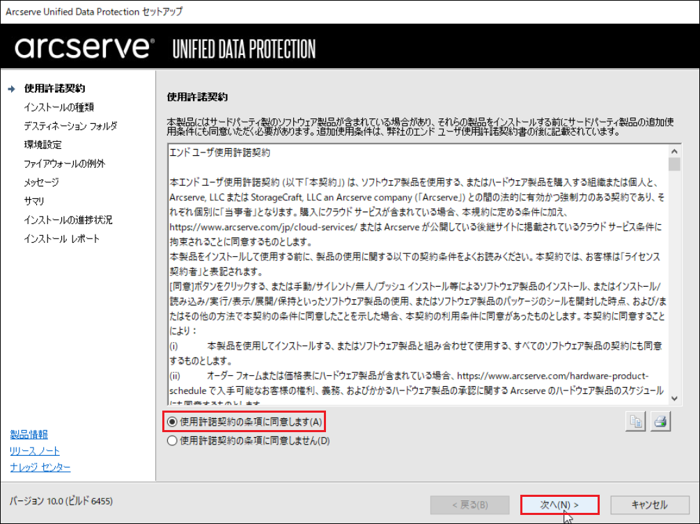 5.「ArcserveUDPコンソール」にチェックを入れ、[次へ]をクリックします。