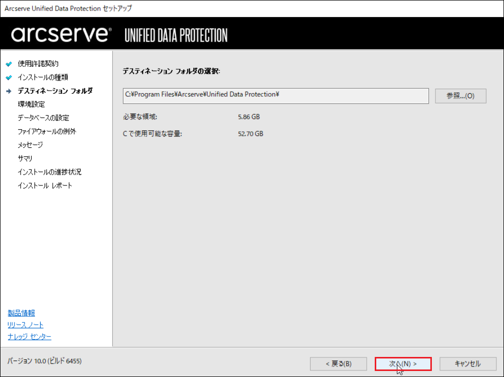 6.インストールする場所を指定または参照し、[次へ]をクリックします。