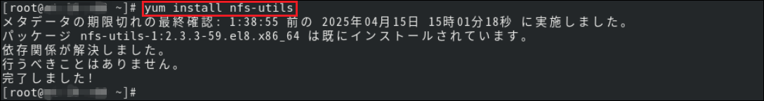 12.「nfs-utils」がインストールされたことを確認します。