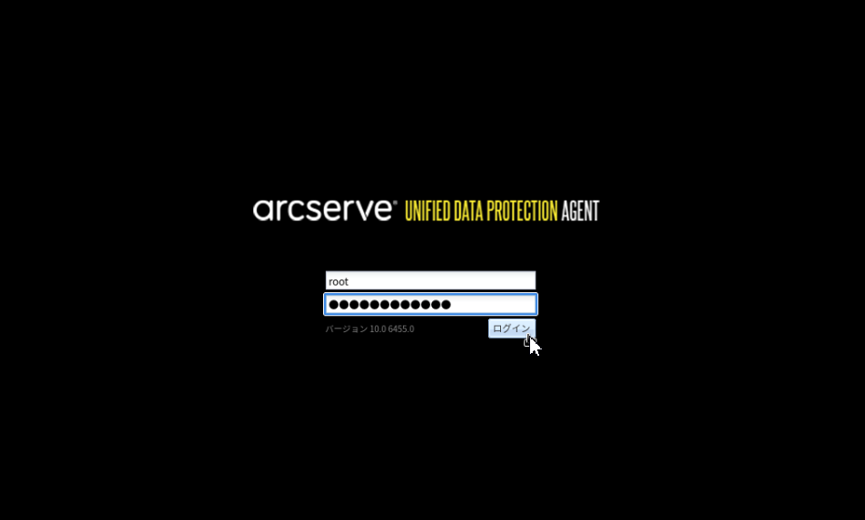 10.https://[arcserveがインストールされたバックアップ対象LinuxサーバのIPアドレス]:8014を入力実行します。Arcserveにroot権限でログインします。