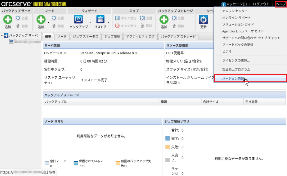本書では、例としてRHEL 8.8にArcserve UDPエージェントをインストールする手順を記載します。