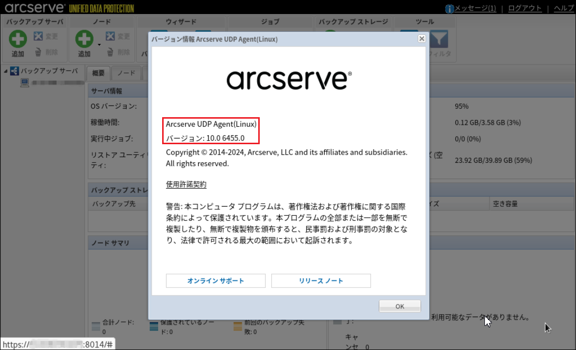 https://[arcserveがインストールされたバックアップ対象LinuxサーバのIPアドレス]:8014