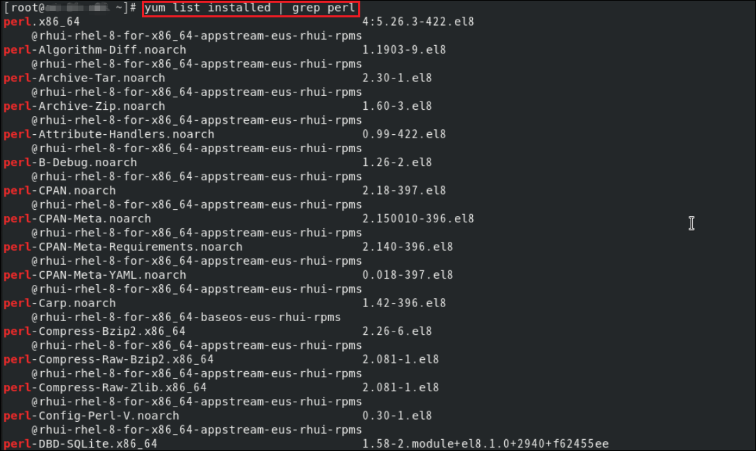 $ yum list installed | grep perl