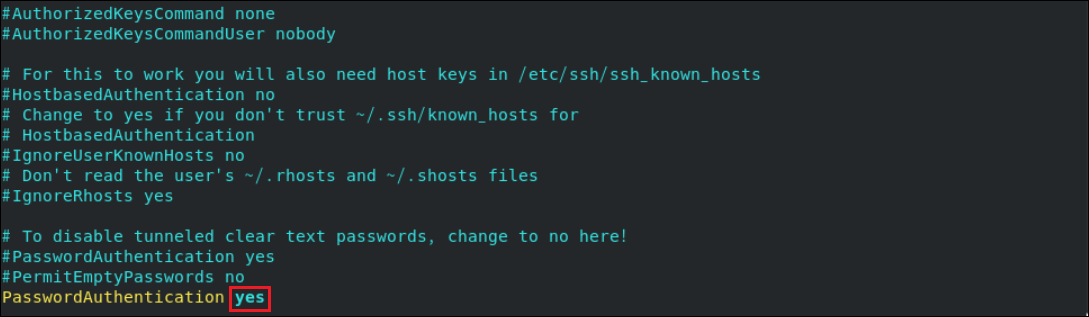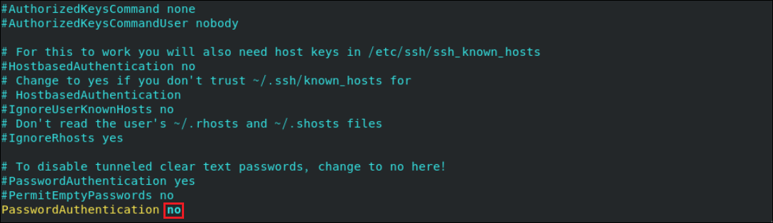 8.[PasswordAuthentication]が[no]になっていることを確認します。