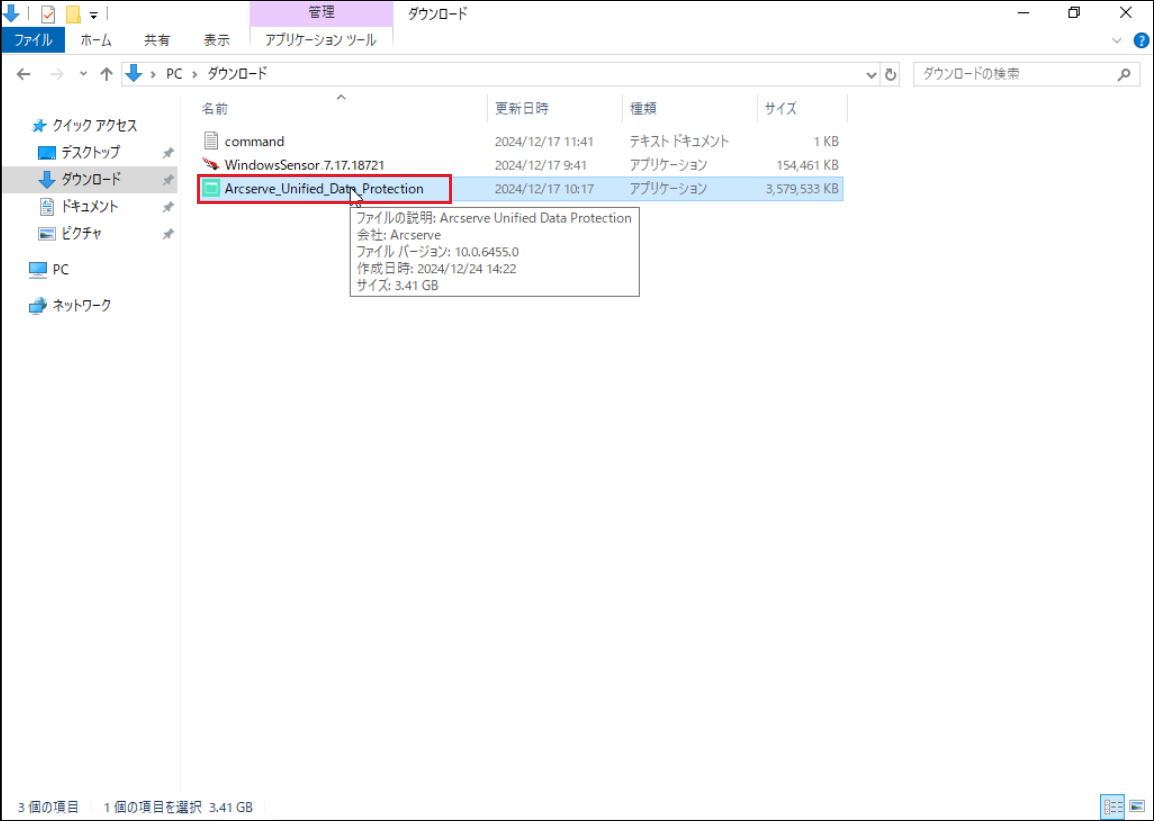 1.Arcserveの復旧ポイントサーバーをインストールするコンピューターに、AdministratorまたはAdministratorsグループのユーザーでログインします。Arcserve Webサイトから、ダウンロードしたインストーラが保存されているフォルダーを開き、「Arcserve_Unified_Data_Protection.exe」をダブルクリックします。セットアップウィザードが開始されます。