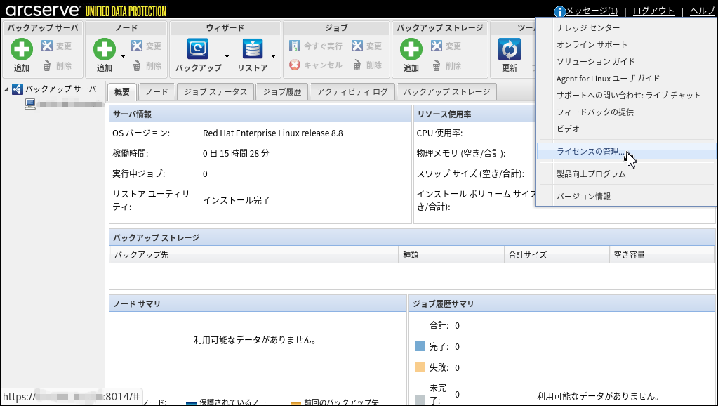 本書では、1つの例としてRed Hat Enterprise LinuxのサーバーにインストールされているArcserveのライセンスキーを登録する手順を記載します。