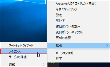 インストール後、管理者権限のあるユーザーでログインし、タスクトレイにあるArcserveのアイコンを右クリックし、メニューから