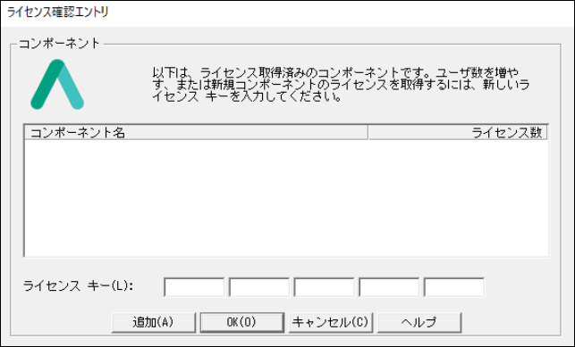 4.登録した「コンポーネント名」(製品名)と、「ライセンス数」を確認し、[OK]をクリックして画面を閉じます。
