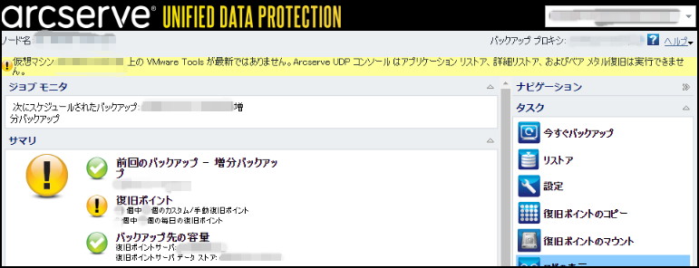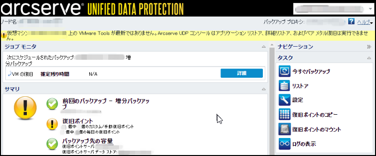 23.VMの復旧ステータスが消えたことを確認し、バックアッププロキシサーバーの管理画面(ブラウザー)を閉じます。