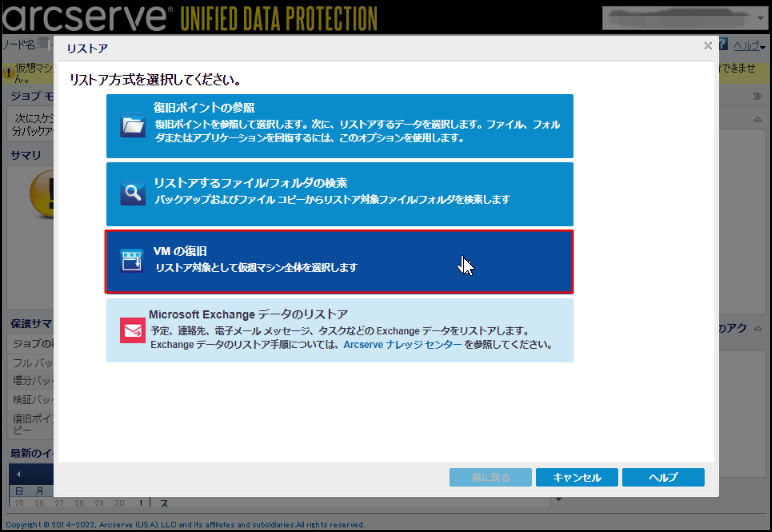 3.8.3. ハイパーバイザーサービス上の仮想マシンへの復旧(VM復旧)¶