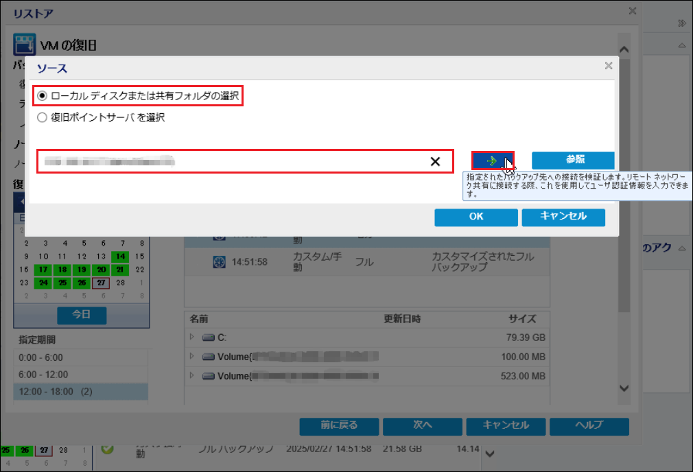 「共有フォルダ」からリストアする場合は、手順6.~7.を実施後、手順11.以降を実施してください。