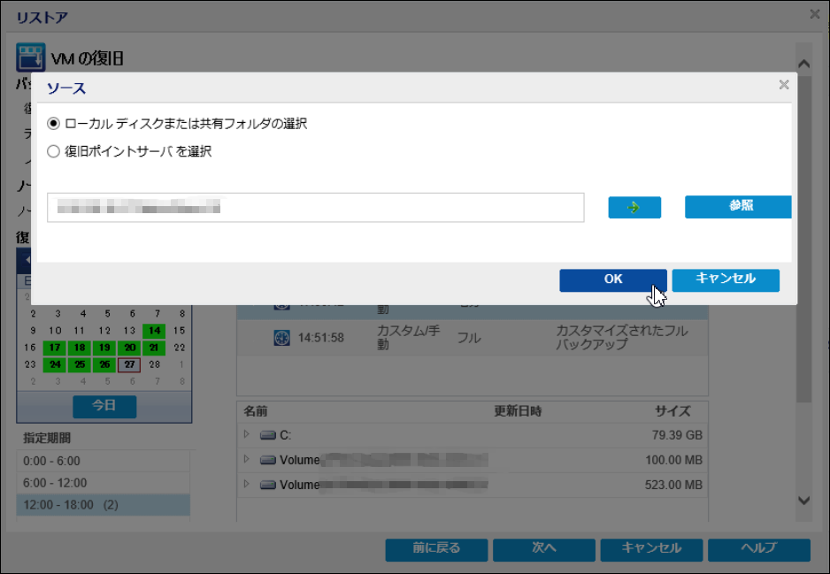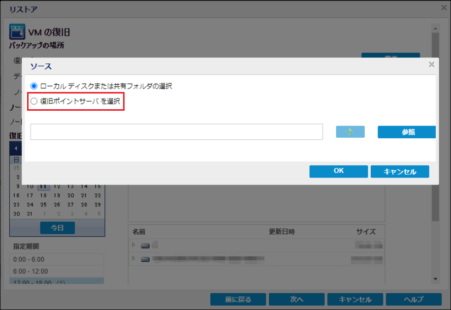 8.ソース選択画面で[復旧ポイントサーバーを選択]を選びます。