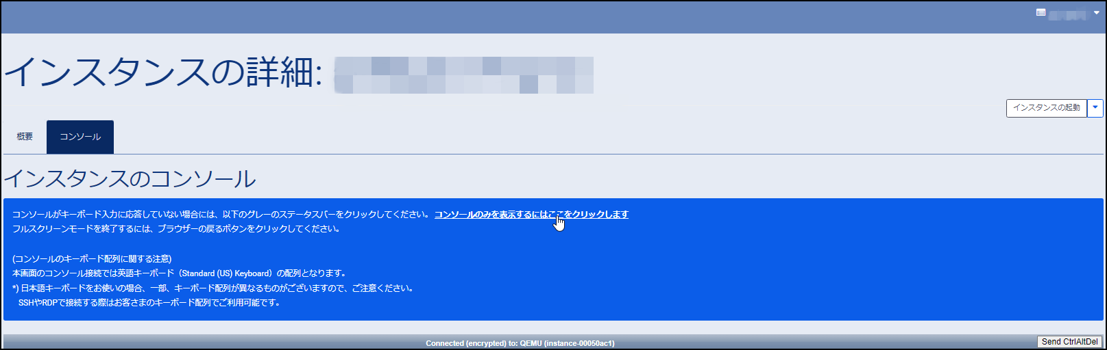 10.インスタンスの詳細画面にてインスタンス画面に入ります。