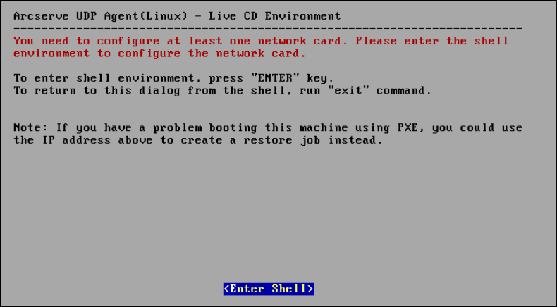 8.以下のようにIPアドレスが設定されていることと、リストア実施を設定する画面にアクセスするためのURLが表示されていることを確認します。