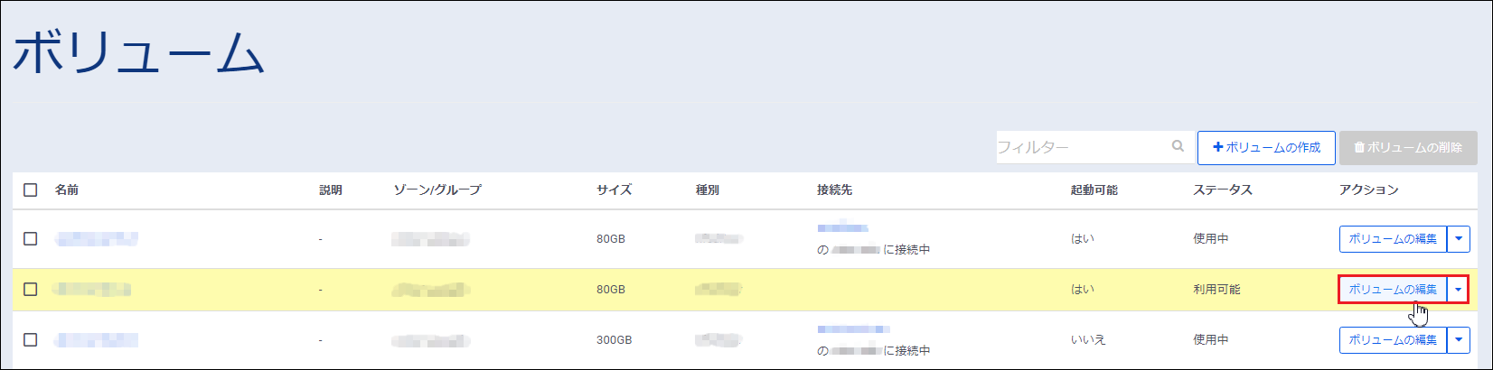作成したボリュームの[ボリュームの編集]をクリックします。