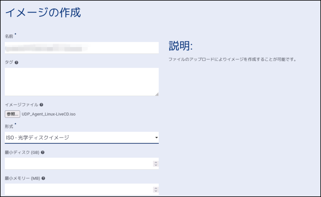 フレーバー:任意で入力(復旧に用いるためだけのインスタンスなので最少構成でも可能な場合もございますが、リソース不足でリストア失敗するケースの報告もございますため、ある程度のリソースの適用を推奨いたします。)