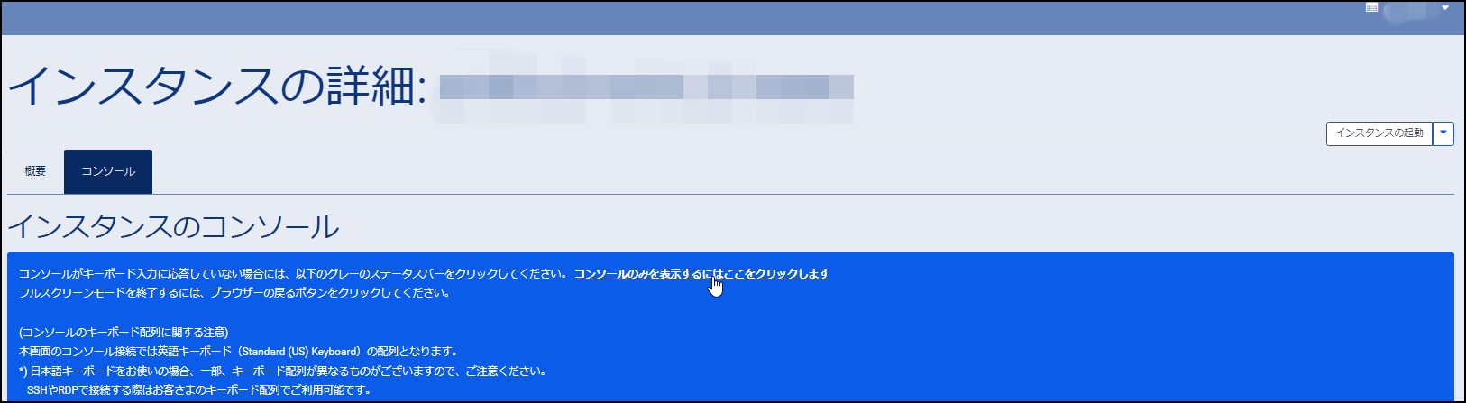 7.インスタンスの詳細画面にてインスタンス画面に入ります。