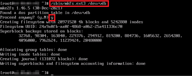 $ /sbin/mkfs.ext3 /dev/vdb