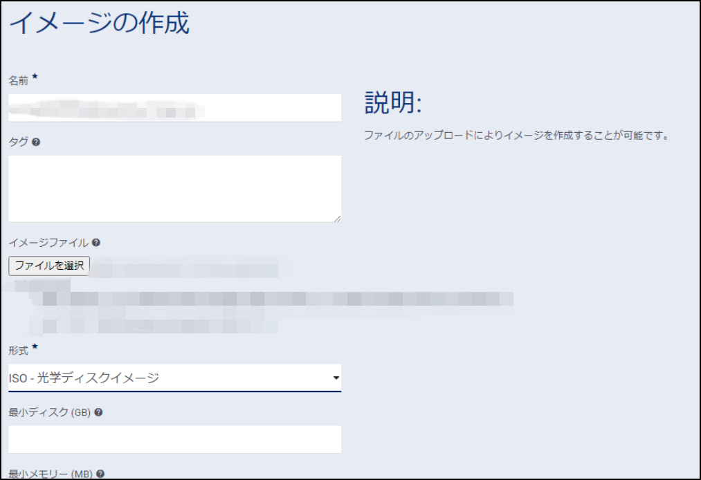 フレーバー:任意で入力(復旧に用いるためだけのインスタンスなので最少構成でも可能な場合もございますが、リソース不足でリストア失敗するケースの報告もございますため、ある程度のリソースの適用を推奨いたします。)