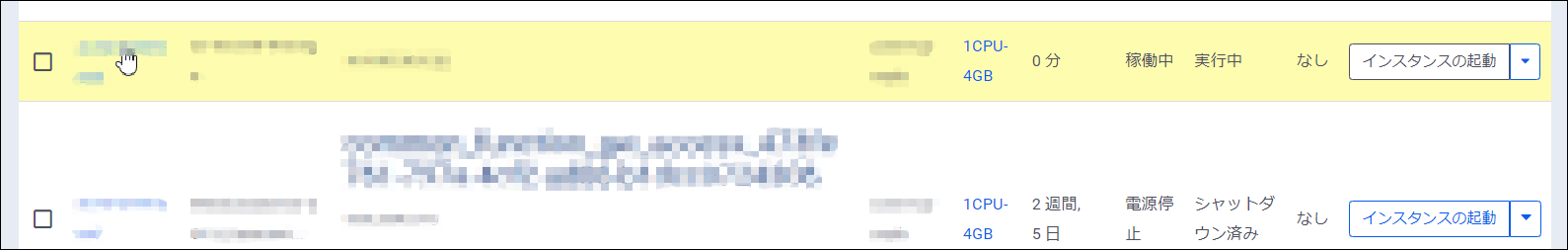 確認できたインスタンスを起動し、インスタンス名の項目をクリックして「インスタンス」画面を表示します。