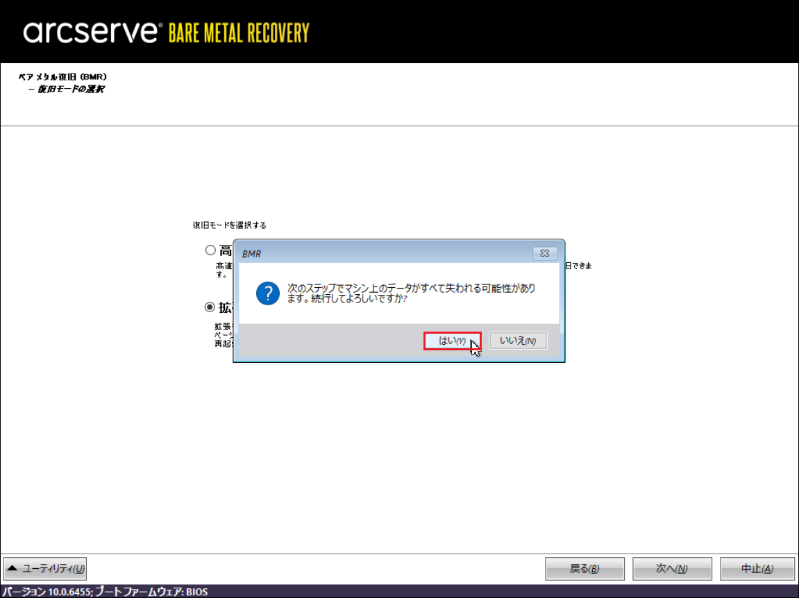 17.「BMR」ポップアップ画面が表示されたら[はい]をクリックします。