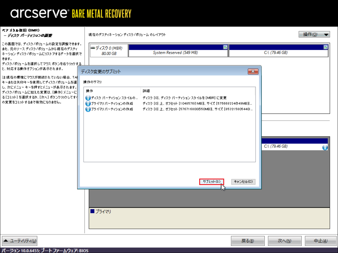 23.「ディスク変更のサブミット」画面で、[サブミット]をクリックします。