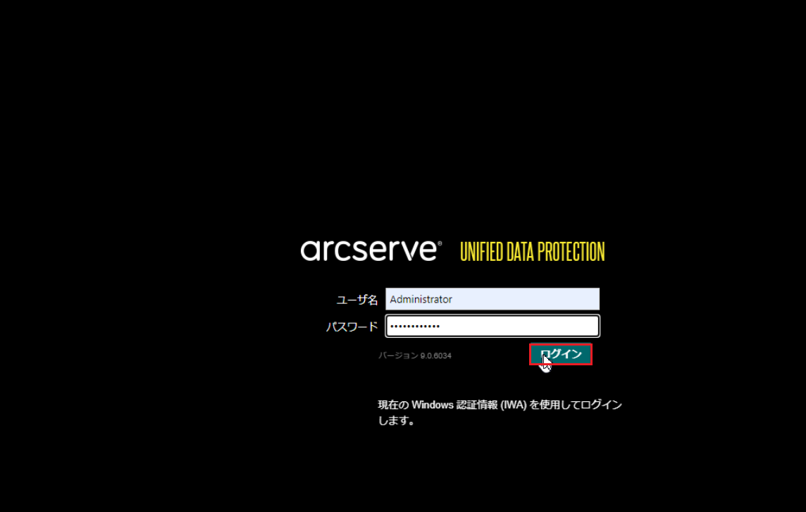 1.Arcserve UDP コンソールがインストールされているサーバーでArcserve UDP コンソールにログインします。