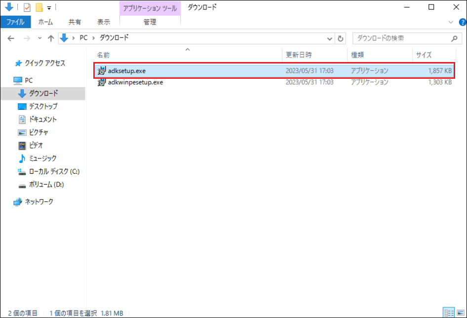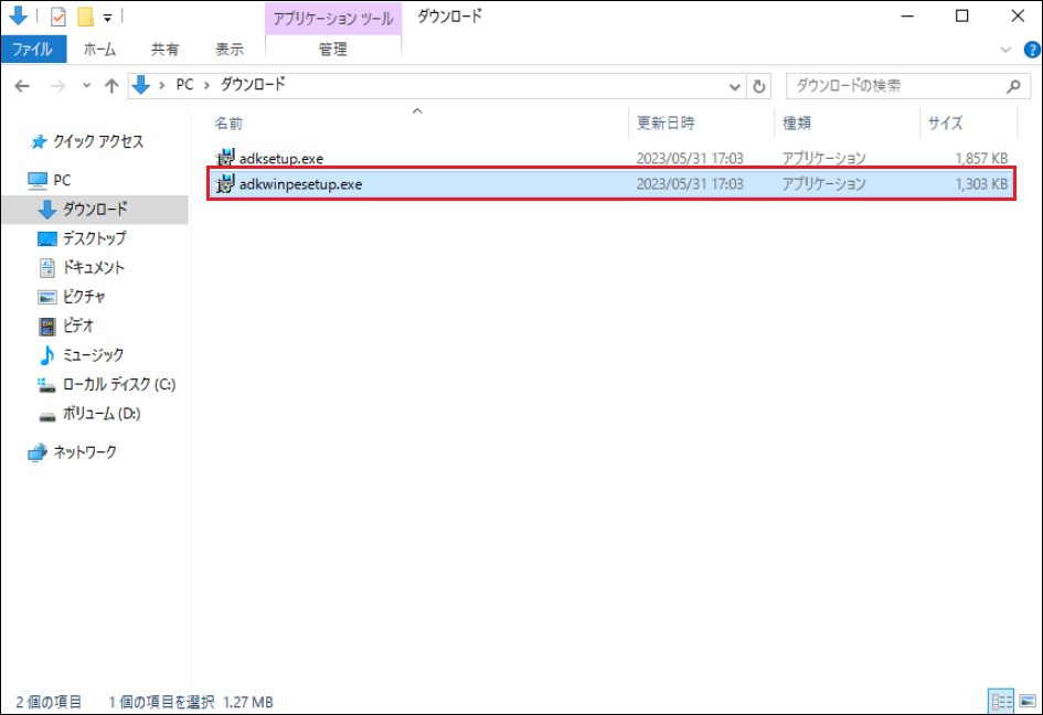 11.次に、ダウンロードした[adkwinpesetup.exe]をダブルクリックし、起動します。