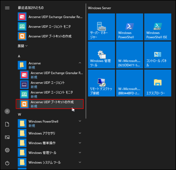 Windows スタートアップ メニューから、[Arcserve UDP ブートキットの作成]を選択してください。